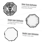 Features: Professional, high quality 8-pole 65cm foldable octagon softbox. On-camera flash light mount type, width adjustable to suit most flashes. Can be handheld, the handle is angle adjustable; Can be mounted on light stand. Adopt superior fabrics with exquisite workmanship and fine crease resistance. Reflective silver inner can minimize light reduction. White soft cloth evenly soften light. Comes with a portable carry bag. Specifications: Shape: Octagon Pole Quantity: 8 Diameter: 65cm / 25.6" Mount Type: For On-camera Flash Light Color of Inner Side: Silver Item Weight: 565g / 19.9oz Package Size: 50 * 18.5 * 17cm / 19.7 * 7.3 * 6.7" Package Weight: 845g / 29.8oz Package List: D5274 1 * Octagon Softbox 1 * Soft Cloth 1 * Handle 1 * Carry Bag Note: Flash light is not included.