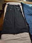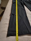 Embrace the unique blend of style and comfort with these TRIPP NYC vintage Y2K women's pants in size 7. The classic black and gray color scheme pairs effortlessly with a variety of tops for a versatile wardrobe addition. Designed for juniors, these cargo pants feature a trendy wide-leg silhouette, perfect for making a statement at any event, from casual gatherings to music festivals. Attention to detail is evident with the durable denim fabric, practical pockets, and a low-rise fit that combines with the flat front to offer both style and functionality. Accents like grommets and a buckle add an edge, while the zip and button closure ensure a secure fit. Whether you're into punk, emo, or goth aesthetics, these pants are an ideal choice for those who value individuality and vintage flair.