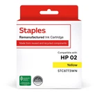 Keep print jobs running smoothly with this Staples HP 02 yellow ink cartridge. Make an impression by using this yellow ink cartridge to print documents. The yellow ink produces a vibrant hue to make images stand out. This Staples HP 02 yellow ink cartridge delivers up to 500 pages to complete a variety of printing tasks. • Yields up to 500 pages per high yield cartridge. • High yield cartridges save you money and time compared to buying a standard cartridge. • Contains one yellow high yield cartridge. • Staples cartridges produce reliable copies. • Packaging contains 100% recycled content... eBay STORE ABOUT US SAVE SELLER CONTACT US TRU RED Remanufactured Ink Cartridge Replacement for HP 02 (Yellow) TRC8773WN/SIH-R - Sold as 1 Each Keep print jobs running smoothly with this Staples remanufactured HP 02 yellow ink cartridge. Make an impression by using this yellow ink cartridge to print documents. The yellow ink produces a vibrant hue to make images stand out. This Staples remanufactured HP 02 yellow ink cartridge delivers up to 500 pages to complete a variety of printing tasks. • Yields up to 500 pages per high yield cartridge. • High yield cartridges save you money and time compared to buying a standard cartridge. • Contains one yellow high yield cartridge. • Staples remanufactured cartridges produce reliable copies. • Packaging contains 100% recycled content. • Compatible with: HP Photosmart 3110, 3210, 3210v, 3210xi, 3310, 3310xi, 8230, 8238, 8250, D6160, D6163, D6168, D7145, D7155, D7160, D7163, D7168, D7260, D7345, D7355, D7360, D7363, D7368, D7460; Photosmart All-In-One C5150, C5180, C6150, C6154, C6170, C6175, C6180, C6183, C6185, C6188, C6190, C6240, C6250, C6280, C7150, C7170, C7177, C7180, C7183, C7186, C7188, C7190, C7250, C7280, C7283, C7288, C8150, C8180. • Packaging may vary. • Safety Data Sheet. • Sold as 1 Each. You may be interested in our other listings on eBay.