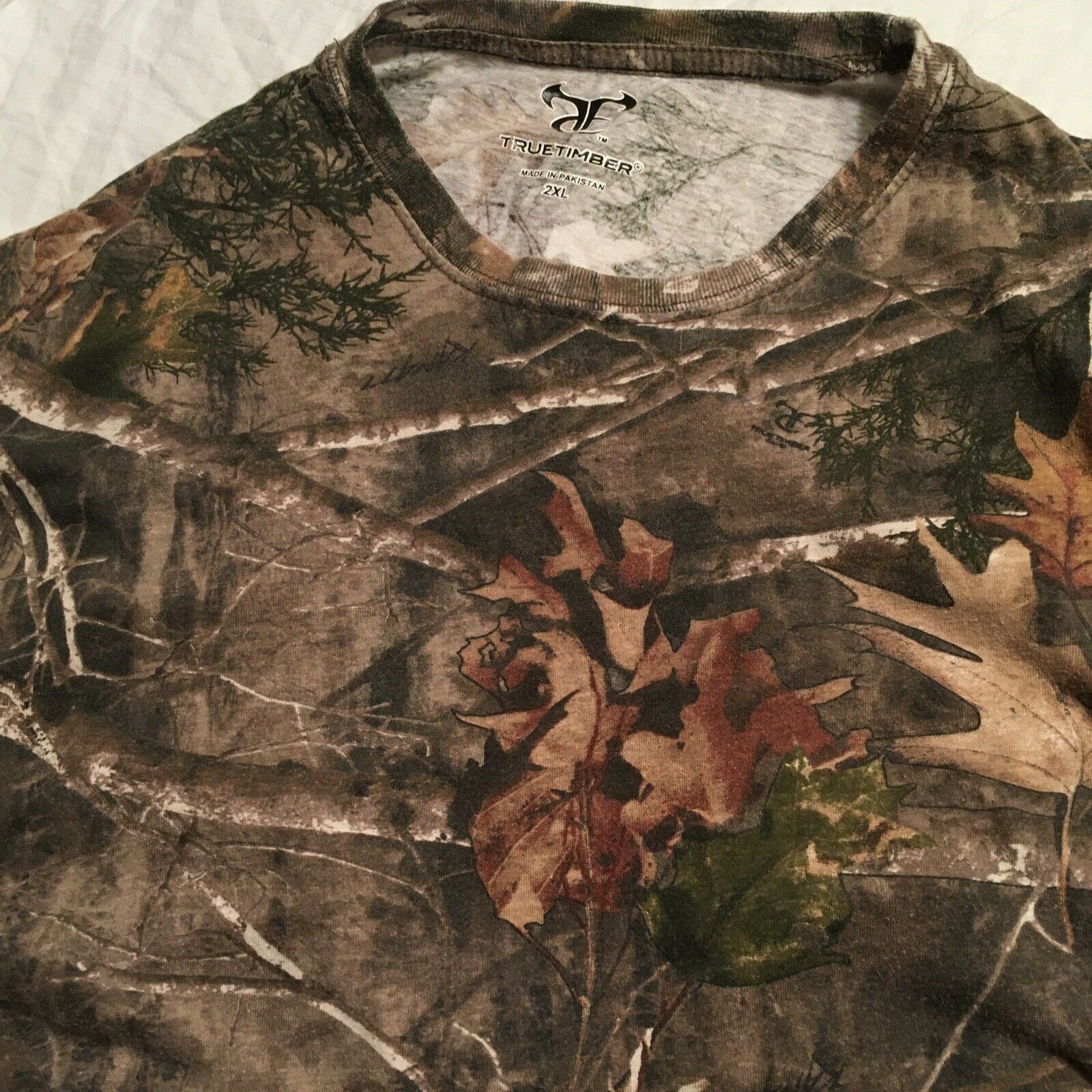 TRUETIMBER Camouflage Hunting T-shirt, Size 2XL. Pre-owned APPROXIMATE MEASUREMENTS: Top of collar to bottom of shirt - 29.5” Across bottom of shirt - 28”