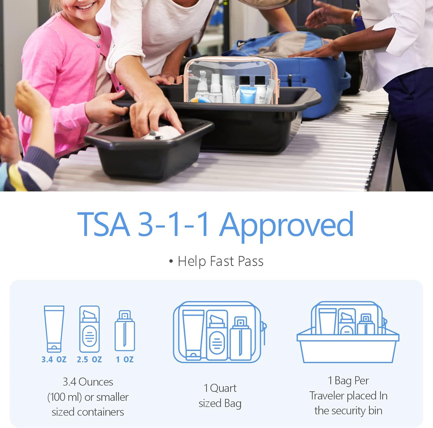 Description: π TSA Approved Travel Toiletry Bag β Your Go-To Travel Companion This TSA Approved Travel Toiletry Bag is designed to simplify your travel experience, allowing you to quickly and easily pass through security screenings at the airport. Perfect for both domestic and international flights, this bag complies with the TSA's 3-1-1 liquid rule , making it an essential addition to your travel essentials. π Specifications: Size: 7.5 x 5.9 x 2.2 inches Material: Thick Transparent PVC Plastic π‘οΈ TSA 3-1-1 Compliant β Hassle-Free Security Screening β Fully compliant with TSA 3-1-1 liquids rule , making it the perfect bag for carry-on items during travel. β The transparent PVC material allows security staff to quickly see the contents and helps you pass through security with minimal delay . β Convenient for both domestic and international travel . π Durable Zipper & Sealed Seams Smooth Zipper: The high-quality zipper glides easily without getting jammed, and the large zipper opening ensures easy access to your toiletries and cosmetics. Reinforced Seams: The seams around the zipper are sealed and reinforced , preventing the bag from splitting and reducing the chances of liquids leaking out. (Please note: the zipper itself is not waterproof.) πΏ Reusable & Eco-friendly Easy to Clean: Simply wipe down with a wet cloth, and your bag will be good as new, ready for your next trip. Eco-conscious design makes this bag a sustainable choice for travelers who want to minimize waste. Travel Light, Travel Smart! This TSA-approved travel toiletry bag is your trusted companion for smooth security checks and a clutter-free travel experience . Keep your toiletries organized, stay eco-friendly, and enjoy a hassle-free journey! βοΈ