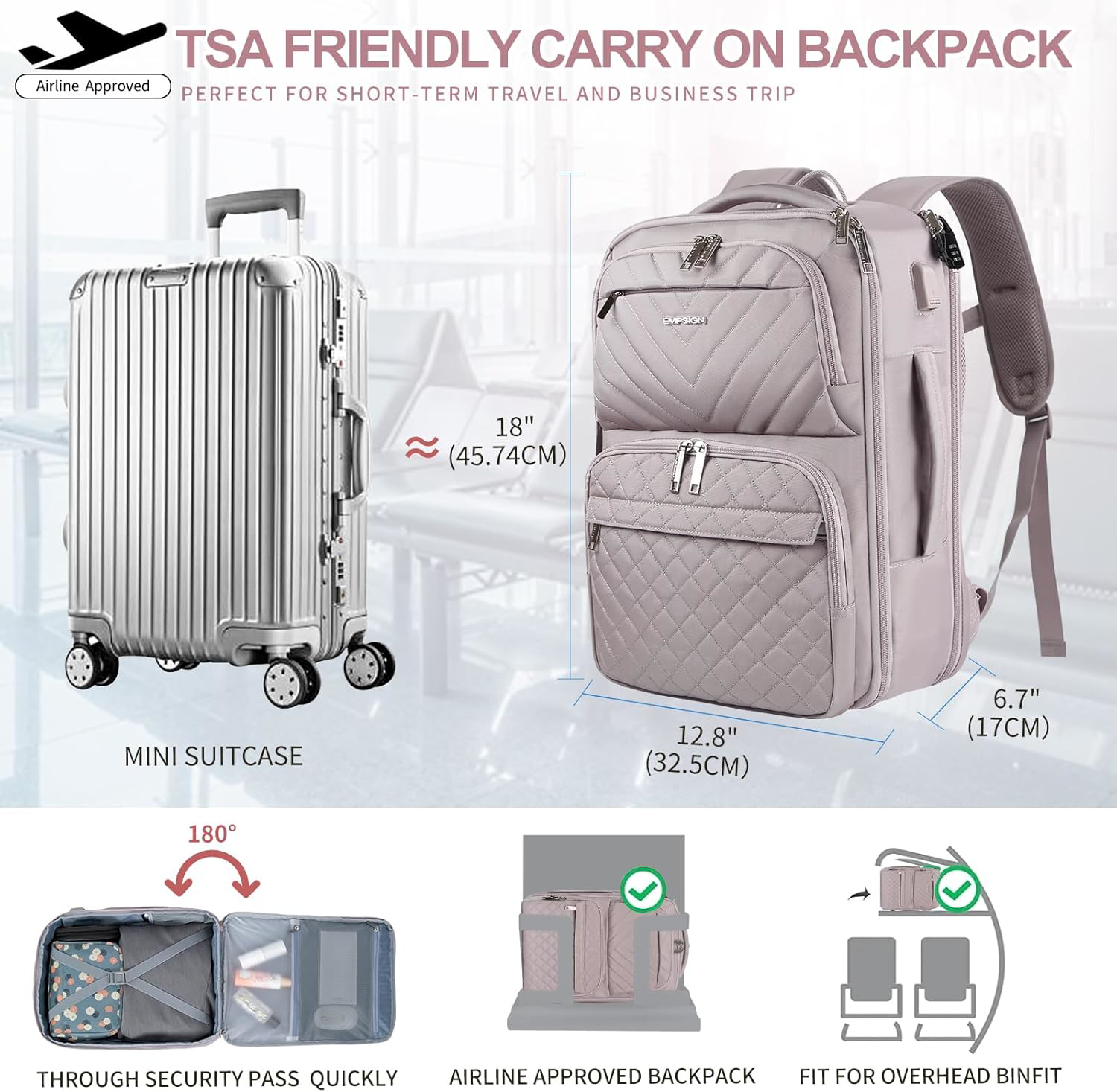 This backpack is a game-changer for travel! The 17-inch size is perfect, fits under seats, and the USB port is so handy. Love the stylish grey and pink design—it’s sturdy yet lightweight. Shipping was super fast, and customer support was excellent. Highly recommend for hassle-free trips!