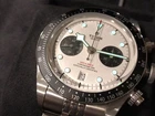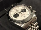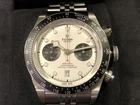For sale is a lightly used TUDOR Black Bay Chrono in the white dial. Watch original comes on the Tudor nylon strap. Currently it sits on a aftermarket center link polished Jubilee bracelet with aftermarket Tudor clasp. Also included is an aftermarket Tudor Ranger oyster bracelet. Please see all pictures of the condition of the watch. There is a small nick at the bottom 6 o’clock bezel, but not too bad. Comes with the original box and card.