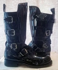 Patent Leather Moto Boots from T.U.K., a division of Gripfast. These were purchased by a collector and saved for decades, a last of their kind. Like all T.U.K., these were made to last. These are NEW, never worn- only one shoe was ever tried on, and cost $185 new!