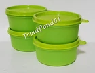 Set of (4) Tupperware Snack Serving Bowls Containers. Each bowl holds about 7 ounces. Measure approximately 3 3/4 inches diameter by 2 inches deep. Color is lime green with coordinating seals. Seals are virtually airtight and liquid tight. Great for travel, lunch box,snacks, leftovers, diaper bag, back pack, on the boat, picnics, camping, anytime! Dishwasher safe, BPA-free. Brand New. Questions are welcome, combined shipping available, fast service! International Buyers: Please be aware of the laws regarding import into your country. Your country may assess a customs fee or tax on this purchase. United States sellers do not have any control over the tariffs, taxes, and customs fees imposed by your country. You are solely responsible for any import duty or tax that your country may impose. No refunds or partial refunds will be made if you choose to abandon the package due to import fees. If a package is returned to the seller, shipping cost is non-refundable. Please do not ask to have customs information falsified as it is against the law.