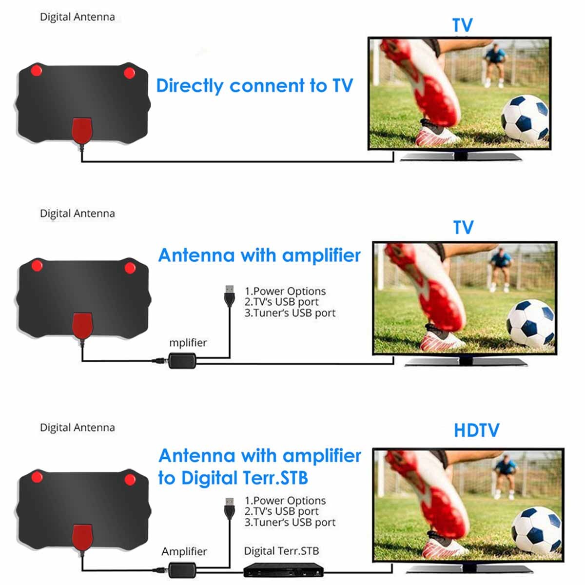Hello! Welcome to nyplatform ! Fashion design,100% Brand New,high quality! Quality is the first with best service. customers all are our friends. Great HDTV indoor antenna! You will be amazed at the performance! This antenna gives you crispy clear HDTV 1080p 4K picture and a lot more channels. It takes only few minutes to start watching HD channels! This antenna works up to 5600 miles away from the station!!! It is flat, comes with stickers to hang it and doesn't take up a lot of room and does not falling down. It pulls in a lot of channels with great reception.?For example, the HD channels are usually better than the Sky HD. Extremely easy to use: just hit the set up / search channels on your TV and that's it. (1)Support 1080p HD 4K !!! (2)5600miles range !!! (3)Coaxial Cable: 4M length (4)Connector Type:F - head with TV adapter (5)V.S.W.R.:<=1.5,Max:1 (6)Impedance:75Ohm (7) Multi-directional capability (8)call out all "Free" channels (9)Gain:25 dBi(with amplifier) (10) Conventional antenna panels are divided into white, black, transparent, support for samples and drawings to order (11)Working Frequency: 174~240MHz,470~862MHz (12)Product size(MM):220*130*0.65 (13)Mounting Paste (14)Radome Color Black (15). Operation Temperature : -45 ~ 85℃ (16). Storage Temperature : -45 ~ 85℃ Package_Contents Antenna with 9.8FT coaxial cable x1 Signal amplifier +3.3FT cable x1 On Jun 1, 2025 at 02:56:13 PDT, seller added the following information: