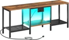 TV Stand with Charging Station to 55 Inches, LED Entertainment Center, Media TV Console Table with Open Storage Shelving for Living Room, Bedroom, Rustic Brown and Black BF122UDDS01 Storage TV Cabinet: The gaming TV stand, sized "L x "W x "H, can hold TVs up to 55". The open bottom shelf is suitable for game consoles, DVDs, and other media devices, with a mesh design that aids in heat dissipation to support device performance Power Center: The media console features 2 outlets and 2 USB ports, with the power strip location interchangeable front and back for convenient device charging. The adjustable light strip helps you set the mood for a vibrant entertainment center Selected Materials: The media console table is made of quality particleboard and a metal frame, ensuring a sturdy build and high weight capacity with the top bearing 110 lb, the bottom 22 lb, the mesh shelves 22 lb. Adjustable feet keep it steady on any floors Vintage Elegance: The television stands boasts a clean design with a rustic wood grain finish complemented by a matte black metal frame, exuding a rich industrial charm and vintage appeal. Its clean lines and solid build make it a stylish addition to various decor styles Clear Assembly Instructions: All parts are labeled, and the LED TV stand comes with a detailed, illustrated manual and the necessary assembly tools. By simply following the instructions step by step, you can enjoy the stylish entertainment center right away ..