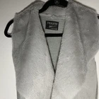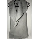 This vest from Twelfth Love features a beautiful faux suede outer shell in a blue-gray color. It has a relaxed fit and is perfect for any occasion, whether it's a party, cocktail event, or for work. The vest has an open closure and a knit back. The faux fur lining adds warmth and comfort, making it a great choice for colder seasons like fall and winter. The vest is machine washable and easy to care for. The solid pattern and bohemian theme make it a versatile addition to any wardrobe. This vest is a size small and is perfect for women who love the outdoors and sportswear. Approximate Measurements PTP lying Flat 16.5 across Length 34 inches