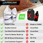 FOOD GRADE SAFE: Superclear Table Top Epoxy is independently tested and certified to 21 CFR 175.300 compliance and ASTM D-4236, ensuring it's completely safe for food contact once cured. HIGHEST SUPER GLOSS: Experience an unparalleled ultra-gloss finish with our Superclear Table Top Epoxy, providing a stunning, mirror-like surface that enhances the aesthetic appeal of any project. SUPERIOR UV RESISTANCE: Engineered for longevity, our epoxy resin boasts the highest level of UV resistance, protecting your projects from yellowing and ensuring they retain their clarity and brilliance over time. SEAMLESS COLOR INTEGRATION: Compatible with a variety of coloring agents like Supercolors Pigments, pigment powders, and alcohol inks, our epoxy resin offers endless possibilities for creative and personalized finishes. wear and tear, offering exceptional impact resistance which ensures your projects remain intact and beautiful under rigorous use. BAR TOP COATING: Designed as the ultimate bar top epoxy, it features self-leveling properties, high scratch resistance, and a water and chemical resistant formula, ensuring a long-lasting, super gloss finish. PROUDLY AMERICAN MADE: Our epoxy resin is crafted with excellence in Saint Petersburg, FL by Fiberglass Coatings, Inc., a company with over 60 years of experience, guaranteeing top-quality, American-made products. DIY FRIENDLY WITH VARIOUS SIZES: Available in sizes ranging from 1 pint to 2 gallons, our epoxy resin is perfect for both small and large projects, making it ideal for DIY enthusiasts and professional users.
