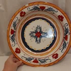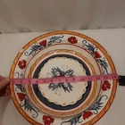 Tabletops Gallery Italiano Hand Painted Handcrafted Large Serving Bowl READ In good pre-owned condition may show signs of wear from use/handling/storage/display. Please view all pics for condition/details/flaws/issues. SOLD AS IS In fair/poor pre-owned condition may show signs of wear from use/handling/washing/displaying/storage please view all photos for details. This is a beautiful, colorful large serving bowl but does have a few flaws the sticker on back is peeling off please see photos 3, 4, & 7, there are also 2 large chips please see photos 1, 5, 6 & 8, there is also some scuffing to bottom of bowl please see photo 7.