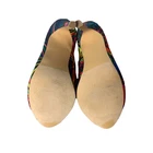These striking Liliana peep-toe stilettos showcase a vibrant multicolor pattern designed to make a statement. The high heel adds height, while the open-toe design offers a modern twist. Ideal for those who appreciate bold fashion choices and wish to add a splash of color to their wardrobe. • Peep-toe design • Stiletto heel • Multicolor pattern • Slip-on style • Synthetic lining Heel height approximately 4 inches.