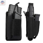Product Description: Need to carry extra ammo? Just add two or three of these babies to your kit. 1.Molle Compatible On the back are MOLLE compatible straps that can lock it into place on your chest rig, assault vest, plate carrier, backpack, soft gun case or other gear with MOLLE webbing. Slap on some morale patches for that edge. 2.Front Pouch Fits and secures most pistol magazines, it also can be used as a flashlight, knife, multi-tool holster, OC spray, etc. 3.Elastic Cord Secured in place by an elastic band, easy to adjust elastic band to keep article reaches the most stable state. 4.Open-Top Kangaroo Mag Pouch Hold one rifle magazine and one pistol magazine Rifle mag pouch with bungee cord. Pistol mag pouch fits 9mm .30 .38 .45 Pistol mags. Specification: Weight: 70g Material: 500D Nylon Size: 5.5"*2.75"*2" / 15x7x5cm(H*W*T) Color: Black/Khaki/Army Green/CP/BCP Package In clude: 1 x Mag Pouch Warm Tips Only a kangaroo mag pouch, anything else is not included.
