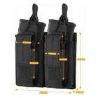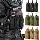 Tactical Mag Pouch for Rifle and Pistol Open-Top Molle Double/Triple Magazine Pouches Holder Carrier for M4 M14 G36 HK416 Magazines Feature: 【Two-layer Design】-- Both fit for rifle mag and pistol mag. Rifle mag pouch for holding most 556 rifle magazines like AK, M4, M16 and AR type rifles' magazine. Pistol mag pouches for holding Glock, M1911 and 92F magazines, etc. 【4 Practical Design】-- Open top design; elastic bungee cords; adjustable hook & loop flips. You can leave the flaps open for ease of draw, besides you can personalize this mag pouch by attaching some cool patches or badges to it. 【1000D Nylon Material】-- Made of high quality 1000D nylon fabric, waterproof, durable, tear-resistant and wear-resistant. 【Molle System Compatiable】-- With MOLLE straps on the back, this Molle mag pouch can be attached to tactical belt, vests, backpack, plate carrier, chest rig, or drop leg platforms. 【Wide Usage】-- Open-top mag pouch with a large capacity to load your magazines. Fits many different styles of magazines. Perfect for activities like airsoft, hunting, paintball, shooting, wargames, etc. Specification: 1. Item: Tactical Molle Magazine Pouch 2. Material: Durable Waterproof 1000D Nylon 3. Color: Black/Khaki/Army Green 4. Double Mag Pocuh: 6.2*1.2*5.3in Triple Mag Pocuh: 9.4*1.2*5.3in Package Includes: 1* Mag Pouch (Magazines are not Included)