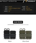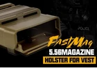Product Name: Fastmag 5.56 Magazine Holster Product Model: BG3535 Material: ABS Weight:180g Color: Black/Dark Earth/Olive Package: Magazine Holder x 2 piece(other objests are NOT included) Function: Outdoor /Airsoft Totally 3 colors for your option, please select the one you need Made by high plastic Reduces reload cycle time, slight twist draws magazine out easily for quick reload. Able to attach to any MOLLE webbing vest, bag or backpack...etc. Able to mounted together. Quick release and easy to install. Modules can be used independently or in combination