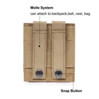 Prod uct Description: Material: Nylon Size:4.33 inch x 3.93 inch x 0.78 inch (11 x 10 x 2 cm) Color: Black, Army Green, CP, ACU, Khak i Accommodating Design – This Double Pistol Mag Pouch Can Be Used On Any Tactical Vest, Backpack, or Battle Belt That Accepts MOLLE Attachments which means you can attach it to a tactical vest, large backpack or rucksack, rifle case, wide waist belt, and more. Special design – Tthis molle magazine pouches uses the way the magic stickers opens and closes, Use this for flashlight, pocket knife, multi-tools and anything else you want to access easily on the outside of your pack. Versatile – Our double mag pouch is ideal for tactical range and firearm training, hunting, law enforcement, police officers, border patrol, first responders, military personnel, and anyone looking to stay tactically proficient. Package Included – 1 PCS Tactical Double Magazine Pouch Holster(Only one bag )