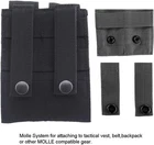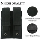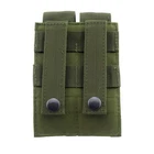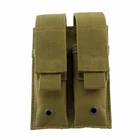 Product Description: Featu res : 1. Nylon fabric, which is strong wear resistant, comfortable and soft. 2. Holds two pistol Mags: Depring mag pouch can holds two double-stack or single stack pistol magazines, it also fit pocket knife, flashlight or edc tools. 3. Adjustable Hook Loop Flap: Secured with heavy duty hook and loop flaps with quick release pull tab. 4. MOLLE Pouch: Clips onto your tactical vest, belt, pack or other MOLLE compatible gear. 5. Durable: Made by sturdy nylon materials, grommets on bottom for drainage. Size: 5.5”*4” (14cm*10 cm), Available in color Black, Army Green, Khaki, CP, ACU. Specifica tions : -Material: Nylon -Weight: 78g -Color: Black, Khaki, Army Green, ACU -Size: 14*10cm/5.51*3.94inch Package includ es : 1x Double Magazine Pouch