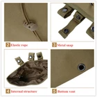 Product Description: Features: 1. Made from 900D Oxford Waterproof cloth fabric,it is durable,tear-resistant,waterproof. 2. Ajustable Strap. Equipped with the adjustable strap, can be attached on the belt when you playing cs game. Fit to duty tactical belt & any molle system vest. 3. Drawstrings opening, easy-pull cinch cord make it's easy to close and open the pouch with one hand. 4. Fast Changing for magazine. Drop pouch is essential for improving the speed of magazine change. 5. Fit to duty tactical belt & any molle system vest&Molle backpack.Rugged Durability and Lightweight Strength. Specifica tion s: 1. Material:900D Oxford Waterproof fabric 2. Color:Black,ACU,CP,Khaki,Army Green,Jungle Camouflage 3. Size:30*24.5cm/11.81*9.66inch 4. Type:Tactical Dump Magazine Pouch Package included: 1 X Tactical Dump Magazine Pouch
