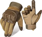 Product Description Features: 【Premium Material】This Gloves are made with high-quality microfiber construction and seated double thread, the reinforced PU layer improves the anti-slip performance while the dual layer synthetic leather palm provides an outstanding grip on hands. 【Heavy Duty Tactical Gloves】No need to sacrifice comfort for protection as our glove is lightweight and doesn’t affect natural finger movements. They are super soft on your hands but rough and tough on the exterior. Thick enough to protect your hands. 【Anti-Slip Waterproof】The Gloves is made of double-layer synthetic leather with anti-slip mesh and reinforced PU layer to improve anti-slip performance. Our gloves are made of waterproof material, so you don’t have to worry about cold and wet hands. 【Touchscreen Compatible】Thanks to the screen-friendly properties, you don’t have to take off the gloves when using your phone. 【Widely Application】 Ideal for work and various outdoor activities: paintball, camping, motorcycle, cycling, dirt bike, climbing, hiking, tactical training, etc. Specification: Material: Microfiber Artificial Leather, Nylon, Rubber Protection Color: Black,Khaki,Army Green Size: S/M/L/XL Size (Palm Circumference) S: 6.30-7.09 Inch M: 7.48-7.87 Inch L: 8.27-8.66 Inch XL: 9.06-9.45 Inch Due to manual measurement, it's allows 0.12(in) discrepancy Note: The middle finger length of the full finger gloves: S: 8.2 cm, M: 8.5 cm, L: 8.7 cm, XL: 9.0 cm, error range: + / - 0.3 cm Package Includes: 1 Pair of Tactical Gloves