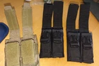 This tactical magazine pouch is designed to securely hold single or double stack pistol magazines. The MOLLE system allows for easy attachment to a variety of surfaces, making it perfect for use in hunting or other outdoor activities. Constructed from durable nylon material, this pouch is built to withstand wear and tear. Whether you're a seasoned gun enthusiast or a casual shooter, this magazine pouch is an essential tool for keeping your magazines organized and easily accessible. The sleek design and sturdy construction make it a reliable choice for any outdoor activity. Say goodbye to cluttered pockets and hello to an organized and efficient shooting experience. Two Black twin magazine holders with clips to secure One Khaki twin magazine holder with velcro to secure