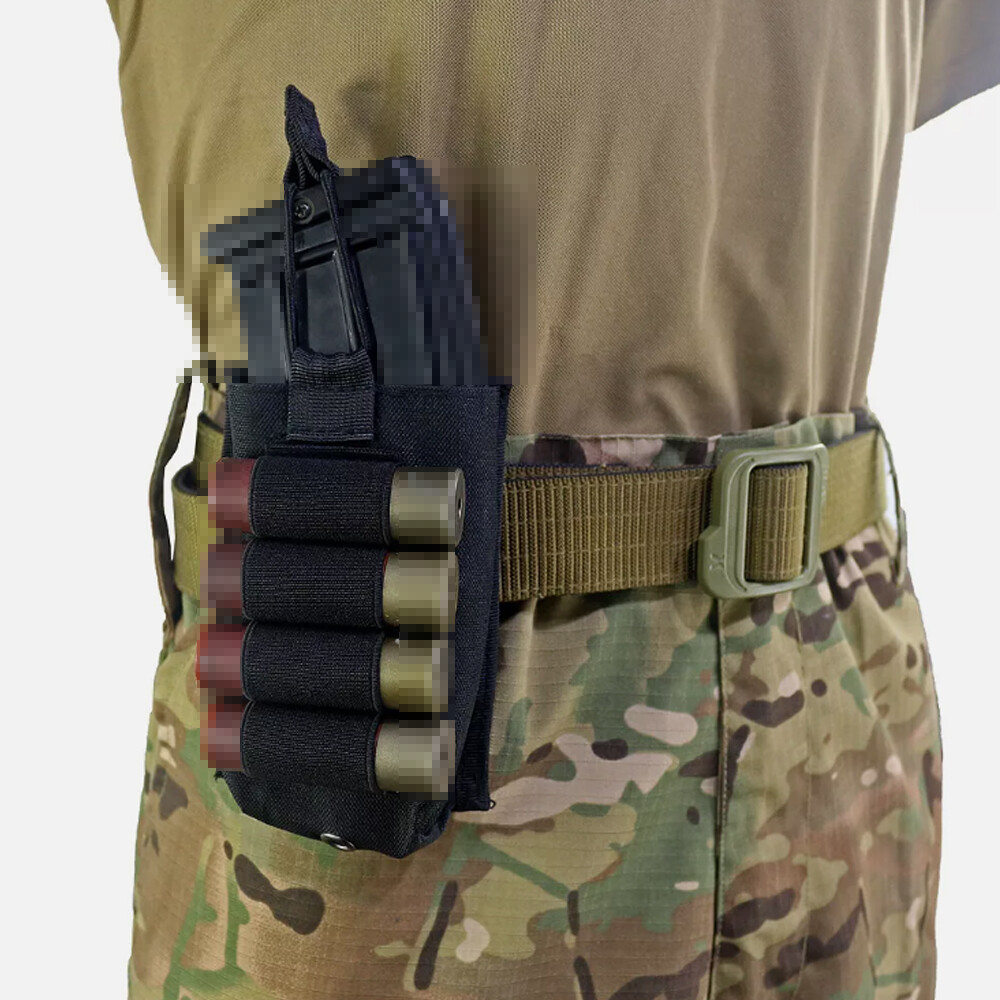 Tactical Molle Rifle Magazine Pouch 4 Rounds Shotgun Shell Holder Ammo Waist Bag Features: 1. Made from 1000D waterproof Nylon fabric,which is durable and wear resistant. 2. It can be used for holding 4 bullets. 3. Suitable for many outdoor activities,such as Hunting,Shotting,Cycling,Leisure,Camping,Climbing,etc. 4. Easy and convenient to carry when you are hunting. 5. MOLLE Straps to attach it to your standard molle tactical vest, backpack, belt, drop leg platform, gun bag, etc Specifications: 1. Material:Nylon 2. Color:Black,Army Green,Khaki 3. Size:13*7.5*4cm/5.12*2.95*1.57inch 4. Structure: 4 holes, can put 4 bullets 5. Usages:Hunting,Camping,Shooting,Outdoor sports Package included: 1 X Tactical Gun Magazine Pouch
