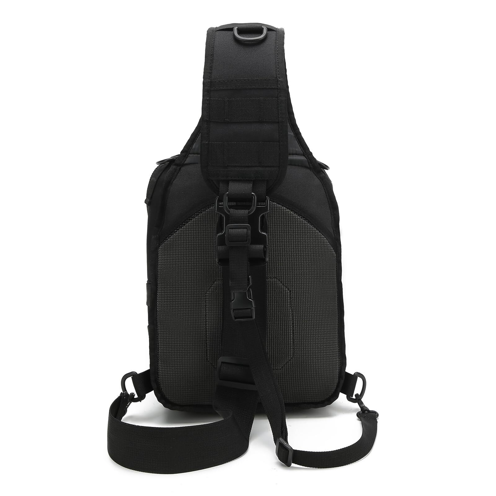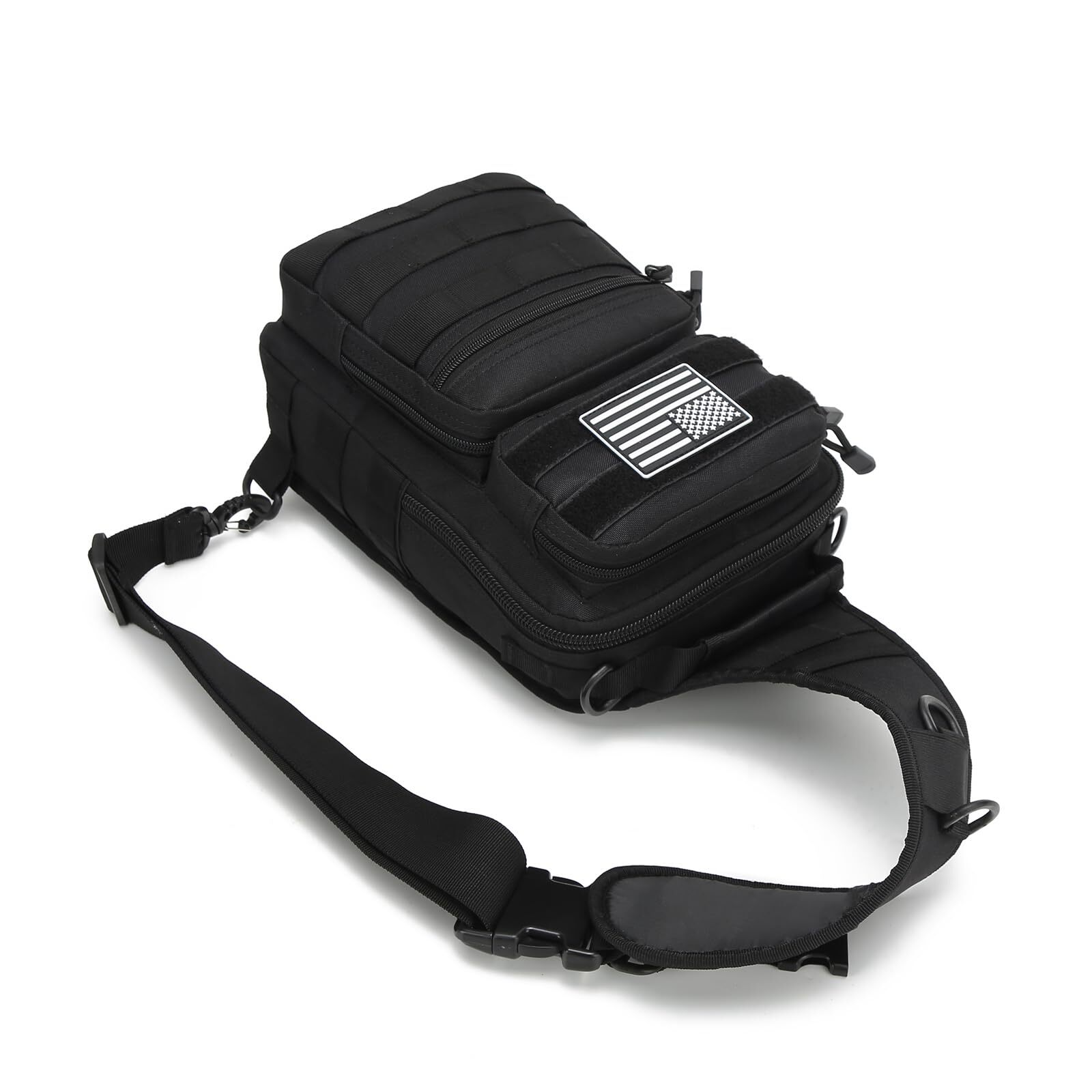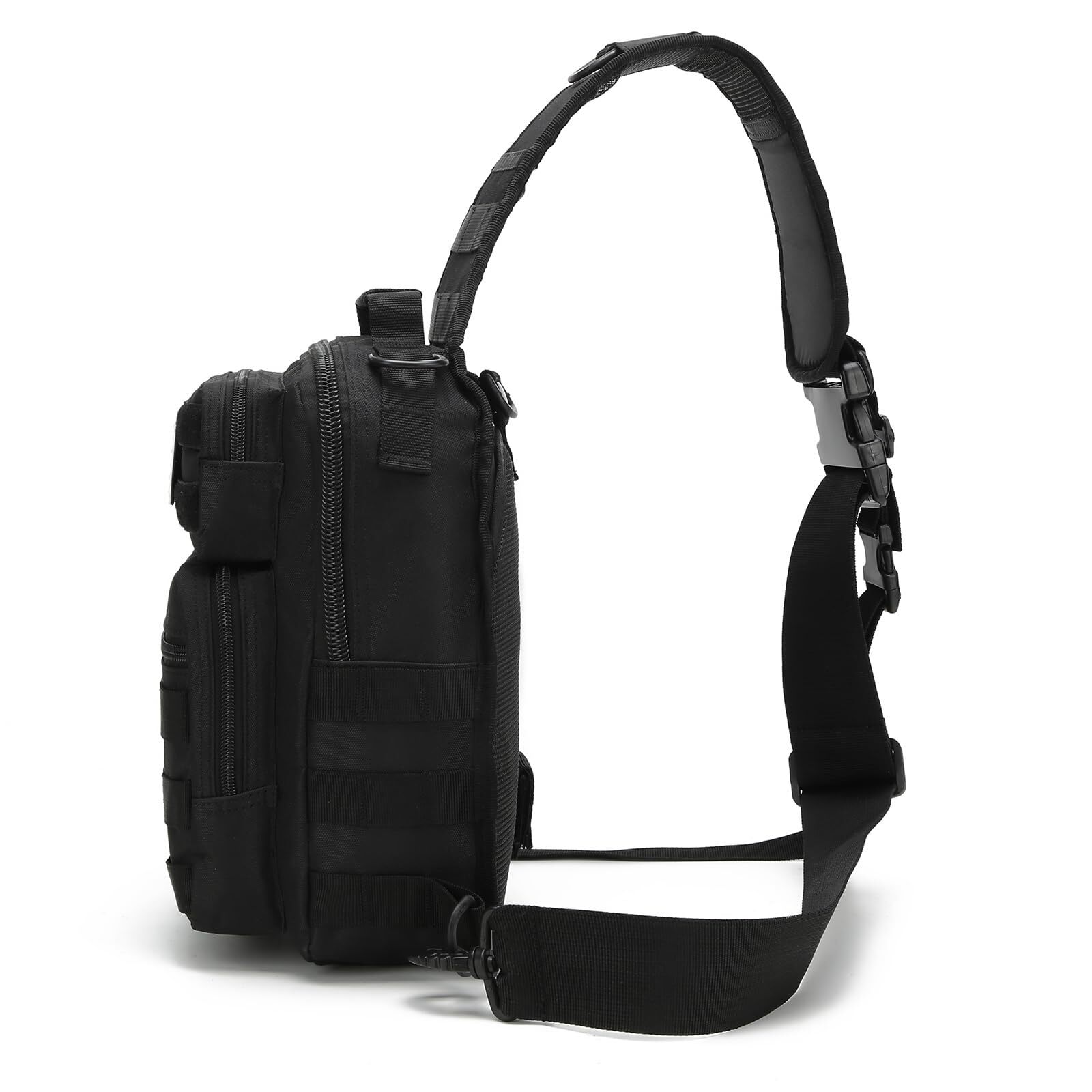 This tactical sling bag is a game-changer for daily essentials! Perfectly compact yet surprisingly spacious, it fits my iPad, wallet, keys, and water bottle with room to spare. The MOLLE webbing adds versatility, and the durable black material holds up great. Lightweight and comfortable for all-day wear, it’s ideal for quick trips or outdoor adventures. Love the multiple compartments—everything stays organized. A must-have for anyone who values convenience and rugged style!