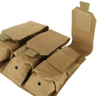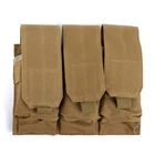 Product Description: Features: 1. MOLLE system design, can be hung on a backpack with mole system 2. Able to attach to any molle webbing vest, bag or backpack...etc. 3. Magazines secured by flaps with heavy duty hook and loop. 4. It is made from 600D Nylon Material,comfortable and durable. 5. Suitable for Airsoft or BB Gun competition, Live CS game, Tactical game, Survival game. Specification: 1. Name:Tactical Triple Magazine Pouch 2. Size:25*17*5cm/9.84*6.69*1.97inch 3. Color:Black,Khaki,Army Green,ACU 4. Material: Nylon Package included: 1 x Magazine Pouch