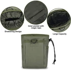 Product D escription : Type A - 20*15*10cm/7.87*5.9*3.94inch Fea tures : 1. One main drawstring open top pocket and one front pocket. With two mesh pockets on two sides to hold flashlight or other small items. Note: The drawstring couldn't be closed completely and there leaves a hole. 2. Our d ump pouch is made of 600D waterproof nylon, hard wearing plastic fasteners, elastic webbing cinch cord and anti-magnetic press stud fasteners. Durability and waterproof makes the amm o pouch max used in any situation, a faithful friend for keeping anything for you. 3. Ammo bags can be attached to any molle webbing vest, bag, duty belt or backpack, it's a great choice for Camping, Hiking, Shooting, Cycling & Hunting. Allows you to q uickly store your Shooting Gear into a convenient pouch when you need it. 4. Molle System: Molle external expansion system designed to be used in combination with other equipment, you can load pockets, water bottle pouch, accessory kits and other. 5. Suitable for hiking, camping, trekking, hunting, travelling, gym, sports, school, tools bag, outdoors and so on. Specific ation : 1. Item Dimension:20*15*10cm/7.87*5.9*3.94inch 2. Item Weight:Approx 140g/5oz 3. Color:Black,Khaki,Army Green,ACU Camo,CP Camo,Jungle Camouflage,Jungle Digitial 4. Material:600D Nylon Type B- 30*24.5cm/11.81*9.66inch Feature s : 1. Made from 900D Oxford Waterproof cloth fabric,it is durable,tear-resistant,waterproof. 2. Ajustable Strap. Equipp ed with the adjustable strap, can be attached on the belt when you playing cs game. Fit to duty tactical belt & any molle system vest. 3. Drawstrings opening, easy-pull cinch cord make it's easy to close and open the pouch with one hand. 4. Fast Changing for magazine. Drop pouch is essential for improving the speed of magazine change. 5. Fit to duty tactical belt & any molle system vest&Molle backpack.Rugged Durability and Lightweight Strength. Specific ations : 1. Material:900D Oxford Waterproof fabric 2. Color:Black,ACU,CP,Khaki,Army Green,Jungle Camouflage 3. Size:30*24.5cm/11.81*9.66inch 4. Type:Tactical Dump Magazine Pouch Package included: 1 Pack x Tactical Military Ammo Pouch Bag