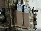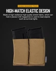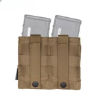 Material: High Density Durable Nylon Fabric. Color:Coyote Brown,Black,Ranger Green,Multicam Weight:120g Size:14cm x 15cm Package:Pouch x1(NOT include magazine samples) Fits for 2 x 5.56 .223 mags. As pocket stitched by thick elastic fabric, it can be fits mags firmly. Open-Top design for quick draw without any troubles. Webbing on back and compatible with all U.S. Military MOLLE and PALS system. It also can be attach on the patrol belt.