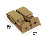 Product Description Feature: 1.Uses: You can put two clips, or other accessories. 2.High-quality nylon material, waterproof and anti-corrosion, strong and durable, at the same time taking into account comfort, softer feel 3.Molle design can be loaded onto tactical vests, belts, girdles, and other devices 4.Magic and mouth closed double to prevent items from falling, inner bag compartments Light weight, small size, easy to carry, easy to use Specification: Material: 600D nylon fabric Color: Army Green/ Black/ CP/ ACU/ Khaki Overall Dimensions: 14 x 10 cm / 5.5 x 3.9 " Weight: 75g Package Include: 1 x MOLLE Double Magazine Pouch