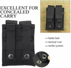 (Double Magazine Pouch)Features: Double pouch can hold flashlight, knife or other gadgets. Clip onto your tactical vest, belt, pack or other MOLLE compatible gear. Fastener tape closure securely closes pouch for magazine retention. Quick release pull tab allows quick access for fast reload. Specifications: Material: 600D oxford fabric Color: Black / Khaki/ Army green ,ACU,CP (Single Magazine Pouch) Specification: Item Name: Magazine Pouch Weight: 33g Material: 600D Nylon Cloth Features: Compact Size, Durable, Portable Length: 13cm/5.12" (Approx.) Width: 5.5cm/2.17" (Approx.) Thickness: 3.5cm/1.38" (Approx.) Package List: 1 * Magazine Pouch