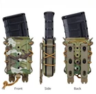 Quality: Made by high quality TPR plastic Weight: 0.2kg Note: vest and magazine samples are not included Colors: Multicam,MultiCam Black,Wolf Gray,Black,Coyote Brown,Olive Drab Reduces reload cycle time, slight twist draws magazine out easily for quick reload. Able to attach to any molle webbing vest, bag or backpack...etc. Able to mounted together. Quick release and easy to install. Modules can be used independently or in combination Can work with each other which is also sold in this link Reduces reload cycle time, slight twist draws magazine out easily for quick reload. Features grommet on bottom for drainage. Pop lock configuration orients excess shock cord down and out of the way. Flared tops enable easy reinsertion of magazines. Universal mounting configuration works with most mounting hardware.