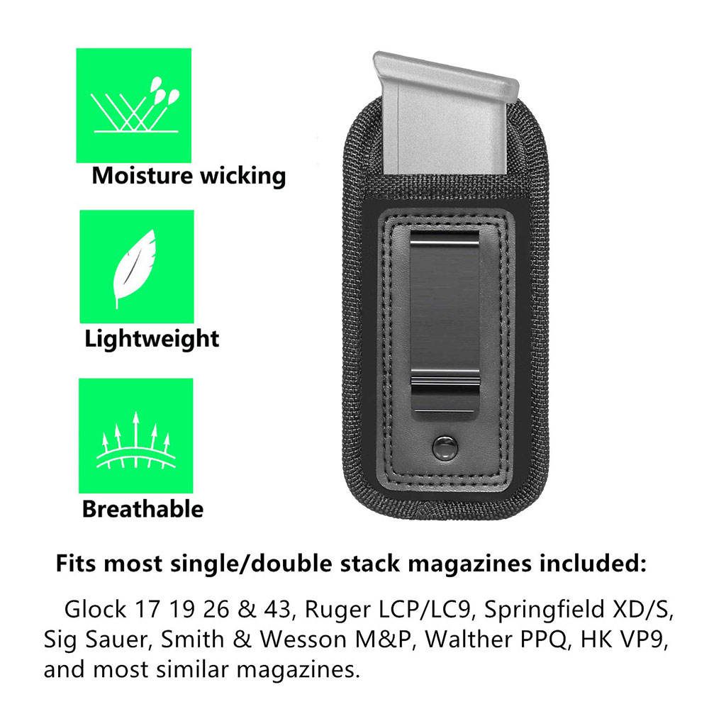 DESCRIPTION PAYMENT SHIPPING RETURN POLICY Shop Category Other Molle Pouch Tactical Bipod Hot Item 3 Pack Tactical Molle Magazine Pouch for .45 9mm Pistol Mag Holder Soft Shell USD 19.94 Tactical Duty Belt Magazine Pouch for .45ACP 9mm Double Stack Pistol Mag Holder USD 10.44 Tactical Molle Magazine Pouch for 5.56 7.62 9mm Pistol Rifle Mag Holder Shell USD 12.34 Picture New List Item Tactical Genuine Leather Double Magazine Pouch for .40 .45 9mm Pistol Mag Holder USD 18.99 3 Pack Tactical Molle Magazine Pouch for .45 9mm Pistol Mag Holder Soft Shell USD 19.94 Tactical Molle Magazine Pouch for 5.56 7.62mm .45 9mm Pistol Rifle Mag Holder USD 12.34 1/2/3pcs Tactical Molle Magazine Pouch for 5.56 7.62 9mm Rifle Pistol Mag Holder USD 12.34 Tactical Duty Belt Magazine Pouch for .45ACP 9mm Double Stack Pistol Mag Holder USD 10.44 Help & Info Payment Policy Shipping Policy Return Policy FAQ About Us Tactical Magazine Pouch for .40 9mm Double Single Stack Pistol Mag Holder Black Single Magazine Pouch Maximum Comfort Guarantee:Our magazine holster pouch is equipped with a strong metal belt clip,and it is made of breathable elastic neoprene with air holes that allow ventilation for your waist Ambidextrous Design:Our magazine holster pouch is suitable for your handgun/pistol mag. They work great with subcompact to full sized pistol mags and can be carried in a variety of ways including appendix, hip and back. Fits for All Magazine Sizes 7rd, 10rd, 15rd Capacity :The universal inside the waistband magazine holster was designed to accommodate a spare clip for .40 / 9mm / .45 / .22 caliber firearm This neoprene belt clip holster can be used for your extra magazine, a folding knife or even some non-lethal equipment such as pepper spray or a taser. Universal holster allows you to draw the mag quickly and effectively. Also, you can walk, jump, work out, and even run with this mag holster's sturdy metal belt clip without any movement of your clip. The sleek design of this holster allows you to carry concealed discreetly with no possibility of magazine showing through your pants Color: Black Style: Inside Waistband (IWB) Material: Leather and neoprene For Gun Model: Universal Handing: Ambidextrous Package List: 1x Single Magazine Pouch Double Magazine Pouch Only fit for Glock 17 / 19 / 22 / 23 / 26 / 27 / 31 / 32 / 33 / 34 / 35 / 37 / 38 / 39; 9mm and .40 Caliber G-lock Magazines 360° Rotates: Adjustable paddle mag holder with a simple allen wrench (package included), secure retention of the magazine is achieved by the built-in screw adjustable tension of the molded polymer Polymer Magazine Pouch: Soft injected silicone paddle for maximum comfort and stability, molded to perfectly fit the shape of the mag, high-tech polymer pouch is the paddle version not the old loop system Concealed Carry: Low profile design for better concealment and easy to removed, clips firmly to pants, belt, gun bag, center console Extreme temperature tolerance: Working -30°F to 180°F; Storage -40°F to 200°F Universality: Ambidextrous can be moved to RH or LH position. Widely used in military, courser, shooting coach, gunnery training, hunting wild, outdoor self-defense, law enforcement agencies or personal protection, etc. Material: Nylon and TPE Handing: Ambidextrous Package list: 1x Double Magazine Pouch Item Specifics Type: Magazine Pouch For Gun Type: Pistol Carry Location: Universal Number of Rounds: 1-2 Number of Magazines: 1 Material: Neoprene,Nylon,Leather Gauge/Caliber: 9 mm Luger,.40 S&W Sport/Activity: Hunting Ammunition Type: Does not apply Model: Does not apply For Gun Make: Universal Features: Multifunctional,Quick Release Handedness: Ambidextrous Modified Item: No Custom Bundle: No MPN: Does Not Apply Brand: HUNTVP Color: Black You may also like Tactical Genuine USD 18.99 3 Pack Tactical USD 19.94 Tactical Molle USD 12.34 1/2/3pcs Tactical USD 12.34 Tactical Duty Belt USD 10.44 2x 4x Universal USD 13.29 1 2 Pack Universal USD 10.44 Tactical Molle USD 7.59 Open Top Molle USD 12.34 Tactical Molle USD 12.34 Tactical Molle USD 22.79 5 Pack Universal USD 16.14 Payment Payments are accepted through Paypal,credit card and other payments on ebay. It's a quick, safe and free way to pay for your online purchases.Payments are instant, so we can prepare your order for shipping as soon as you have paid. Shipping We usually dispatch within 2-3 working days of receiving cleared payment and the shipping time usually is 3-5 days,excluding weekends and holidays,if without any delay. Our shipping system will arrange the shipment asap and if you can not cancel the order by cancellin request, please contact us first and we will try to help you when we see your message on our working days. We usually ship your order to the address on ebay so please check your address before make an order. If you have not received your item after estimated delivered days, please do not hurry to open case to us and contact us first, we will try our best to help you. Return Policy Please contact us first if you have any issues about the item before open the return case so that we can help you solve the problem better. If you want to return the item, please note that all returned products must be in their original packaging with all included accessories and send to the return address that we provide. We will give you full refund when we receive the return item and please kindly wait. Customer Service We handle large emails every day. Please allow us to reply your email within 48hrs.(Monday-Friday). Emails will not be answered weekend or holidays. If you are not satisfied with the item, please contact us first and kindly wait before leave a negative feedback. We will reply and help you solve the problem when we back to work on Monday to Friday.