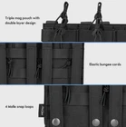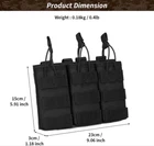 Holds virtually any single or double stack Magazine Magazine is held in place with bungee cord resistant Easy to access to magazine for rapid reloading PALS/MOLLE Straps to attach it to your standard molle tactical vest, backpack, belt, drop leg platform, gun bag, etc Color: Black/Khaki/Army green/CP Material:Nylon Fiber Demension: 28*17cm Package include: 1 x Tactical Mag Pouch