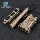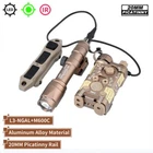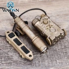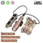 Metal version NGAL Green / Red laser & IR laser M300A SCOUT Flashlight Dual Augmented pressure switch NGAL LED Flashlight Green or Red laser and IR laser ·Optional high and low output power operation mode (double-click the main switch button to turn on the high output mode) ·Function with IR laser,Red laser, green laser and LED lighting ·The laser can be zeroed ·Integrated main body button switch and remote control switch .material: Metal .For 20mm rail .Used by CR123A*1 or 16340*1 battery M300A SCOUT LIGHT Remote Pressure Switch Momentary On Powered by 1x CR123A (NOT inclode) Length : approx 110mm 350 lumens Meterial:Aluminum Tactical Augmented pressure switch Remote dual switch can simultaneously control flashlight & laser pointer For 20MM Rail For M-lok or Keymod system