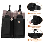 Product Description: Featu res : 1. Nylon fabric, which is strong wear resistant, comfortable and soft. 2. Molle designed for attaching to other Molle systems, such as combat vest, large bags and so on. 3. Molle webbing around the pouch for attaching accessories. 4. Please note: the vest and mag are not included. 5. 100% brand new and high quality 6. Whether utilized by military or responsibly armed citizens, perform to the highest levels of comfort, functionality, and versatility. 7. This versatile pouch can also hold a variety of multi-tools. Specificati on : 1. Material: Nylon 2. Weight: 140g 3. Color: Black 4. Size: 15*14*3cm/5.91*5.51*1.18inch Package includ es : 1x Double Magazine Pouch