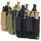 Product Desc ription : 1. Double-Layer Holder New Design: New upgraded, it hold twice layer magazines, one layer to fasten rifle mags and one layer to fasten pistol mags; 2. Double compartments design keep your item in order and in reach, to keep your magazines not falling; 3. Hook & Loop fasten design, fast and easy to open the top and close. 4. Molle System: Molle webbing at the back can be attached to molle gears, including tactical vest/belt/backpack etc. Speci fications : 1. Item Type: Tactical Molle Magazine Pouch 2. Material: Durable Waterproof 1000D Nylon 3. Color: Black/Khaki/Army Green 4. Weight: 140g approx 5. Type: Double Mag Pouch: 2+2 Mag Holder 6. Size: 5.9*1.2*5.3in Package Includes: 1 X Tactical Mag Pouch (Magazines are not included)