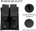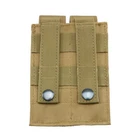 Product Description: Features: Quality material: Our high quality bags are made of 600D nylon material, which is strong and durable. Double bags can hold flashlights, knives or other small tools. Practical design: Modular double storage bag with adjustable hook and stretchable elastic. Don't worry about the magazine or the flashlight falling out. It can be safely closed for quick access to a bag clip or a flashlight. MOLLE System : MOLLE modular straps for all standard MOLLE vests, belts, bags, etc. Clip to your tactical vest, belt, bag or other Molle-compatible gear. Specifications: 100% new, high quality Material :600D Oxford cloth Color: Army green/black/CP/ ACU/ Khaki Overall dimensions :14 x 10 cm / 5.5 x 3.9 inches Weight: 75g Note: Since the picture size is measured manually, there may be an error of 1-3cm, Our product images will be based on the monitor or the light display differences will have a certain color difference, does not belong to the quality of the product, also hope to know! P ackage includes: 1 x MOLLE double magazine bag