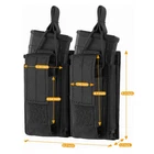 【4 Practical Design】--Open top design; elastic elastic cord; adjustable hook and loop flip. You can open the flap for easy drawing, plus you can personalize this magazine pouch by attaching some cool patches or badges to it. 【1000D Nylon Material】--Made of high quality 1000D nylon fabric, waterproof, durable, tear-resistant, abrasion-resistant. 【Molle System Compatible】--With MOLLE straps on the back, this Molle mag bag can be attached to a tactical belt, vest, backpack, board rack, chest gear or sling platform. 【Wide Use】-- Top opening magazine pocket with large capacity to fit your magazines. Suitable for many different styles of magazines. Great for airsoft, hunting, paintball, shooting, war games and more. 【Fixed rope adjustment buckle】 --can adjust the length of the fixed rope, making it easy to store various types of clips. 【Copper four in one buckle】--Selected high-quality four in one buckle materials, ensuring quality while paying more attention to aesthetics. Item: Tactical Molle Magazine Bag Material: Durable Waterproof 1000D Nylon Color: black/khaki/military green Size:15*14*3cm/5.9*5.51*1.18inch P ackage includes: 1 Mag bag (Excluding other items)