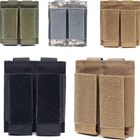 Specifications: Material:Nylon Color:Black,Army Green,CP Camo,ACU Camo,Khaki Size:11*10*2cm/4.33*3.94*0.79inch Usages:Hunting,Camping,Shooting,Outdoor sports Features: 1、Double pouch can hold flashlight, knife or other gadgets. 2、Clip onto your tactical vest, belt, pack or other MOLLE compatible gear. 3、Fastener tape closure securely closes pouch for magazine retention. 4、Quick release pull tab allows quick access for fast reload. 5、Fit for outdoor sports,camping,hiking,hunting 6、MOLLE Straps to attach it to your standard molle tactical vest, backpack, belt, drop leg platform, gun bag, etc Package included: 1/2 Pack X Tactical Double Magazine Pouch