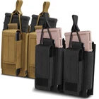 Product Desc ription : 1. Double-Layer Holder New Design: New upgraded, it hold twice layer magazines, one layer to fasten rifle mags and one layer to fasten pistol mags; 2. Double compartments design keep your item in order and in reach, to keep your magazines not falling; 3. Hook & Loop fasten design, fast and easy to open the top and close. 4. Molle System: Molle webbing at the back can be attached to molle gears, including tactical vest/belt/backpack etc. Speci fications : 1. Item Type: Tactical Molle Magazine Pouch 2. Material: Durable Waterproof 1000D Nylon 3. Color: Black/Khaki/Army Green 4. Weight: 140g approx 5. Type: Double Mag Pouch: 2+2 Mag Holder 6. Size: 5.9*1.2*5.3in Package Includes: 1 X Tactical Mag Pouch (Magazines are not included)