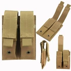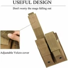 100% Brand New and high quality Features: Double pouch can hold flashlight, knife or other gadgets. Clip onto your tactical vest, belt, pack or other MOLLE compatible gear. Fastener tape closure securely closes pouch for magazine retention. Quick release pull tab allows quick access for fast reload. Specifications: Material: 600D oxford fabric Package List: 1 * Magazine Pouch Note: 1. It is manual measurement, there may be 2-3cm error. 2. And item color displayed in photos may be showing slightly different on your computer monitor since monitors are not calibrated same. hope understanding