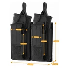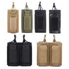 Double - Features: 1. Double-Layer holder New Design: new upgraded, it hold twice layer magazines ,one layer to fasten Rifle Mags and One layer to fasten Pistol Mags; 2. Triple/Double/Single compartments design keep your item in order and in reach,to keep your magazines not falling; 3. Hook&Loop Fasten Design ,fast and easy to open the top and close 4. Molle System:Molle Webbing at the back can be attached to Molle Gears ,including Tactical Vest/Belt/Backpack etc. 5. Package :Only 1 Pouch ,the other items such as magazine is not included Package Includes: 1 * Tactical Magazine Pouch Triple - Feature: 1. Material: This molle mag pouch made of high quality military 1000D Cordura Nylon material, tear-resistant, wear-resistant, special design on the outside of the magic stickers that can stick badge to your favorite. 2. The Back side: there are 4 thick nylon belt with snap button on the back, and the straps can be adjusted as needed to prevent slipping. This product can be perfectly matched with this series of products such as tactical vests and tactical package. 3. The Side: high-elastic elastic band can insert different types of mags and tools. secured in place by elastic band, easy to adjust elastic band to keep article reaches the most stable state. 4. Double Kangaroo Design: The mag pouch features 2/3 compartments, the front small pouch can be loaded with pistol magazines, the back large one can be loaded with rifle magazines. It can accommodate both PISTOL and RIFLE magazines to meet all your needs. Enough mags can be carried while hunting, convenient for you to stay in the wild for a long time. 5. Special Design: Open-Top design for most small caliber rifle magazines and various sizes of mags. Package Includes: 1* Tactical Mag Pouch Single-Features: 1 This pouch is made of high quality 600D nylon fabric. It is strong, durable and wear-resistant. It is also waterproof and anticorrosive. It will not fade even if it is not easy to rot in water. At the same time, it is comfortable and soft to handle. 2 The pouch is designed with a Molle system that can be loaded into vest, belt, backpack and other tools to use, carry a variety of ways, is a multi-functional outdoor tool. 3 This pouch has a hook and loop fastener and double close design, can effectively prevent falling objects, the bag has a separate layer, you can place some small items. 4 This pouch is widely used and can be used as a flashlight bag, spray bag and sundry bag, which brings great convenience to outdoor activities. 5 The design of this bag is compact, small, lightweight, easy to carry and easy to use. Package Included: 1x Kangaroo Mag Pouch