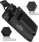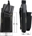 Product Description: Need to carry extra ammo? Just add two or three of these babies to your kit. 1. Molle Compatible On the back are MOLLE compatible straps that can lock it into place on your chest rig, assault vest, plate carrier, backpack, soft gun case or other gear with MOLLE webbing. Slap on some morale patches for that edge. 2. Front Pouch Fits and secures most pistol magazines, it also can be used as a flashlight, knife, multi-tool holster, OC spray, etc. 3. Elastic Cord Secured in place by an elastic band, easy to adjust elastic band to keep article reaches the most stable state. 4. Open-Top Kangaroo Mag Pouch Hold one rifle magazine and one pistol magazine Rifle mag pouch with bungee cord fits M4 M16 AR AK mags etc. Pistol mag pouch fits 9mm .30 .38 .45 Pistol mags, like GLOCK17 M1911 P226, etc. Specification: 1. Weight: 70g 2. Material: 500D Nylon 3. Size: 5.5"*2.75"*2"/15x7x5cm (H*W*T) 4. Color: BCP Camouflage Package Include: 1x Double Decker Mag Pouch Warm Tips Only a kangaroo mag pouch, anything else is not included.