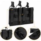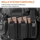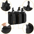Product Description Specifications: 1. Type: Tactical Molle Magazine Pouch 2. Material: Durable Waterproof 1000D nylon 3. 2 Layer Mag Holder: one layer for Rifle Mag, another for Pistol Mag; 4. Triple Mag pouch: 3+3 Mag Holder 5. Triple Mag Pocuh: 9.4*1.2*5.31in Features: 1.Double-Layer holder New Design: new upgraded, it hold twice layer magazines ,one layer to fasten Rifle Mags and One layer to fasten Pistol Mags. 2.Triple compartments design keep your item in order and in reach,to keep your magazines not falling. 3.Hook&Loop Fasten Design ,fast and easy to open the top and close. 4.Molle System:Molle Webbing at the back can be attached to Molle Gears ,including Tactical Vest/Belt/Backpack etc. Package Included: 1x Magazine Pouch