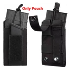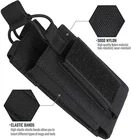 Product Description Features: 1. Molle Compatible On the back are MOLLE compatible straps that can lock it into place on your chest rig, assault vest, plate carrier, backpack, soft gun case or other gear with MOLLE webbing. Slap on some morale patches for that edge. 2. Front Pouch Fits and secures most pistol magazines, it also can be used as a flashlight, knife, multi-tool holster, OC spray, etc. 3. Elastic Cord Secured in place by an elastic band, easy to adjust elastic band to keep article reaches the most stable state. 4. Open-Top Kangaroo Mag Pouch Hold one rifle magazine and one pistol magazine Specifications: Material: 600D Nylon Color: Black Sport Type: Hunting,camping,traveling,climbing Weight: 69g Features: Tear Resistant,adjustable,molle system Size: 15x7x5cm/ 5.5" X 2.75" X 2" ( Overall Dimensions ) Package Included: 1x Tactical Mag Pouch (Magazines are not included)
