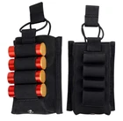 Product Description Feat ures : 1.Durable Material: The magazine pouch is made of 600D nylon and shock cord. 2.Useful Design: The back has MOLLE combined system that mag pouch can be used for backpacks, tactical vests and belts. 3.Fits for: In the front with 4 rounds 12gauge/20g shotgun shells elastic holder, magazines are all held securely and deployed easily and silently on demand from the double magazine pouch, suitable for most of the small caliber rifle magazine. 4.Elastic Cord: The elastic band can be adjustable for tension, and will hold magazines securely with good quality. Specifications: Material: 600D Nylon Color: Black Size: 13*9*2.5cm/5.2*3.5*1.2inch Package Included: 1x Tactical Magazine Pouch (Magazines are not Included)