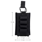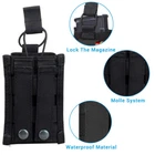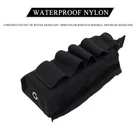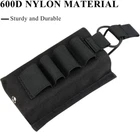 Product Description: Features: 1. Made from 1000D waterproof Nylon fabric,which is durable and wear resistant. 2. It can be used for holding 4 bullets. 3. Suitable for many outdoor activities,such as Hunting,Shotting,Cycling,Leisure,Camping,Climbing,etc. 4. Easy and convenient to carry when you are hunting. 5. MOLLE Straps to attach it to your standard molle tactical vest, backpack, belt, drop leg platform, gun bag, etc Specifications: 1. Material: Nylon 2. Color: Black,Army Green,Khaki 3. Size: 13*7.5*4cm/5.12*2.95*1.57inch 4. Structure: 4 holes, can put 4 bullets 5. Usages: Hunting,Camping,Shooting,Outdoor Sports Package included: 1 P a c k X Tactical Magazine Pouch