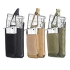 Product Description: Need to carry extra ammo? Just add two or three of these babies to your kit. 1.Molle Compatible On the back are MOLLE compatible straps that can lock it into place on your chest rig, assault vest, plate carrier, backpack, soft gun case or other gear with MOLLE webbing. Slap on some morale patches for that edge. 2.Front Pouch Fits and secures most pistol magazines, it also can be used as a flashlight, knife, multi-tool holster, OC spray, etc. 3.Elastic Cord Secured in place by an elastic band, easy to adjust elastic band to keep article reaches the most stable state. 4.Open-Top Kangaroo Mag Pouch Hold one rifle magazine and one pistol magazine Rifle mag pouch with bungee cord. Pistol mag pouch fits 9mm .30 .38 .45 Pistol mags. Specification: Weight: 70g Material: 500D Nylon Size: 5.5"*2.75"*2" / 15x7x5cm(H*W*T) Color: Black/Khaki/Army Green/CP/BCP Package In clude: 1*Double Decker Mag Pouch Warm Tips Only a kangaroo mag pouch, anything else is not included.