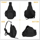 Tactical Sling Backpack Military Daypack Molle Chest Shoulder Bag Department: Unisex Structure 1.Exterior: Two zipped front pockets,Two side pockets,Back zipper pocket,One Mobile Phone pack on the shoulder strap,Velcro closure straps 2.Interior: One open pocket 3.Outer Material: High strength abrasion nylon Inner Material: Waterproof Silky Cotton 4.Back: Thicken Breathablec Sponge 5.Hardware: Metal+Lengthen the Rope Pull Head 6.Adjustable Long Shoulder Strap: Military Nylon Fabrics Unremovable Shoulder Strap 7.Adjustable long Waist: Military Nylon Fabrics Unremovable Waist 8.Chest Sliding Control System Measurements 1.Dimensions: 13.4"W x 19.7"H x 3.5"-6.3"D Side Pockets: 8.7"H x 4.1"W 2.Chest Strap Drop: 3.9"-27" 3.Shoulder Strap Drop: 24.8"-34.6" Shoulder Strap Width: 5.9" 4.Pocket size: (Zipped front pocket): 6.3"H x 7.9"W,8.3"H x 10.6"W 5.Weight: 2lb Features 1.Suitable for fitness, outdoor travel, hiking and other outdoor activities. 2.Chest sliding adjustment system can quickly adjust to their comfortable state,so that more comfortable Backpack. 3.MOLLE external expansion system designed to be used in combination with other equipment,you can load pockets,water bottle bag,accessory kits and other. 4.The bag works well with a variety of different outfits and casual styles. Notes 1.Care:Hand wash with cold water. 2.Tolerance:0.39"-0.79". 3.Packing List:Tactical bag x 1. Material:900D nylon with waterproof coated nylon with protective sponge lining Main size 13.39" W x 19.68" H x 6.30" D (bag top width 7.87 inch,bag bottom Width 9.45inch) fit for IPAD,14 inches laptop, A4 paper size document .Weight: 1.98 lb Can accommodate cellphone, ipad (14"Tablet PCs),wallet, keys, ID card, credit card, small snacks, and other small accessories. Ideal for outdoor sports (hiking, camping, climbing, cycling, etc) and travel use Fashion, multi-function and practical design, and comfortable to wear