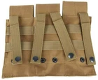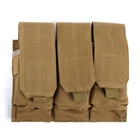 Product Description: Features: 1. MOLLE system design, can be hung on a backpack with mole system 2. Able to attach to any molle webbing vest, bag or backpack...etc. 3. Magazines secured by flaps with heavy duty hook and loop. 4. It is made from 600D Nylon Material,comfortable and durable. 5. Suitable for Airsoft or BB Gun competition, Live CS game, Tactical game, Survival game. Specification: 1. Name:Tactical Triple Magazine Pouch 2. Size:25*17*5cm/9.84*6.69*1.97inch 3. Color:Black,Khaki,Army Green,CP,ACU 4. Material: Nylon Package included: 1 x Magazine Pouch